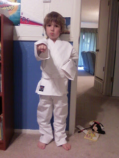On another note, Collin has started Karate lessons. I am thrilled with his school so far. They are pretty tough and make the kids work hard. The instructor is all about "Yes, Sir" and after he comes home from a lesson he has the best manners! He calls us ma'am and sir the rest of the night. I think this is going to be a wonderful experience for him. He has even learned a few words in Korean already. It's a requirement to bow and greet the instructor in Korean before and after each lesson. I call is Karate because that's just easier, but he is really learning Tang Soo Do.